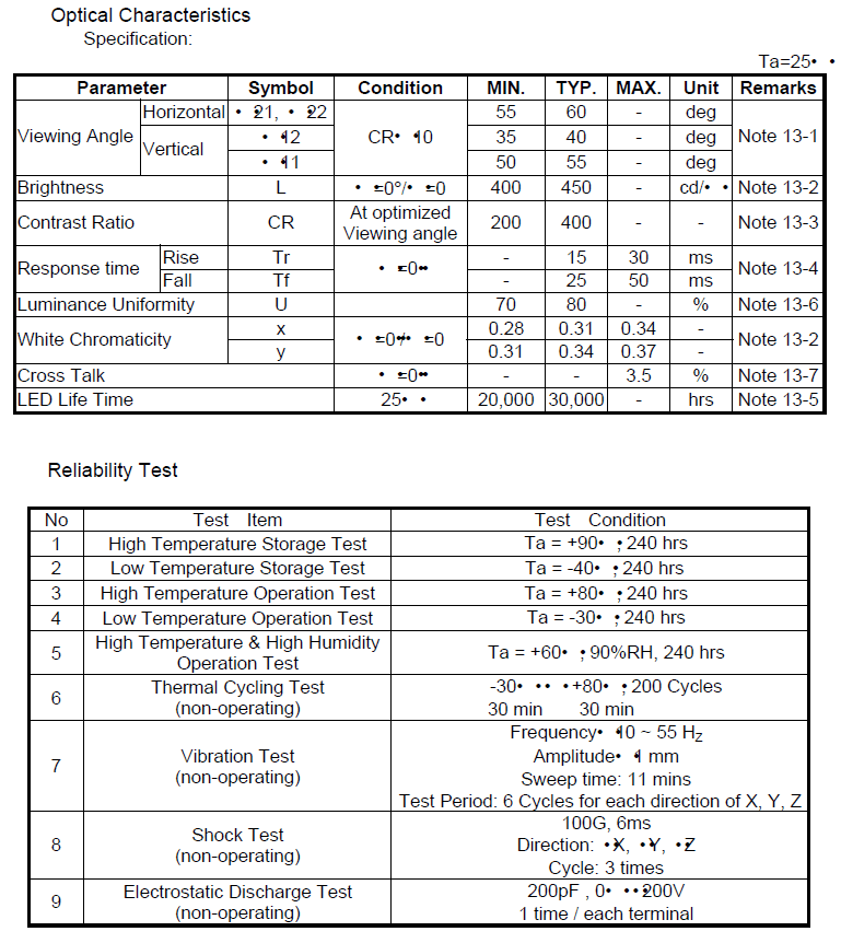 5" LCD X-Bri VGA Engineering Specs